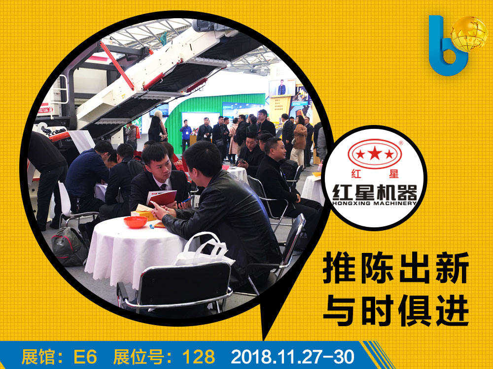 2018上海宝马展在新国际博览心盛大开幕。红星机器以“科技、启迪、未来”为主题,携移动破碎、制砂、筛分、建筑垃圾处理等多款新型设备产品亮相展会。