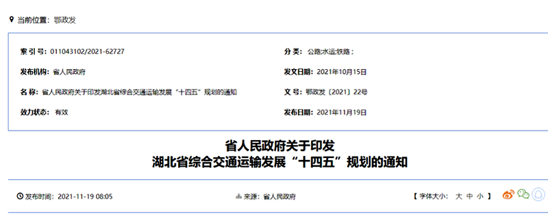 近日,《湖北省综合交通运输发展“十四五”规划》印发,到2025年,湖北省综合交通固定资产投资8200亿元(不含城市交通),其中铁路2400亿元,公路水路5200亿元,民航400亿元,管道100亿元。届时,湖北全省铁路营业里程将达到7000公里,其中高速铁路达3000公里(目前为1600公里左右);二级及以上公路里程达到42000公里,其中高速公路总里程达到8000公里,具备条件的乡镇实现双通道连通。