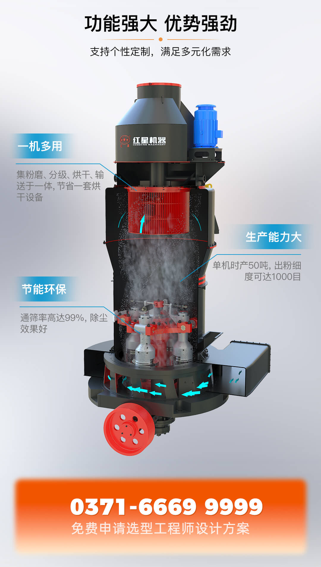 我公司生产的雷蒙磨粉机采用国内外同类产品的先进结构,并在同行业雷蒙磨的基础上更新改进设计而成,该设备效率高、能耗低、占地面积小,一次性投资不多,此外该设备作业过程粉尘少,操作车间清洁、对环境污染不多。